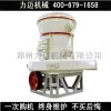 大塊狀物料經(jīng)顎式破碎機(jī)破碎到所需粒度后,由提升機(jī)將物料送至儲(chǔ)料倉(cāng),再經(jīng)電磁振動(dòng)給料機(jī)將料均勻定量連續(xù)地送入主機(jī)磨室內(nèi)進(jìn)行研磨,粉磨后的粉子隨風(fēng)機(jī)氣流上升,經(jīng)選粉機(jī)進(jìn)行分級(jí),符合細(xì)度的粉子隨氣流經(jīng)管道進(jìn)入大旋風(fēng)收集器內(nèi),進(jìn)行分離收集,經(jīng)出粉閥排出即為成品粉子。氣流由大旋風(fēng)集粉器上端回風(fēng)管吸入離心引風(fēng)機(jī),本機(jī)整個(gè)氣流系統(tǒng)是密閉循環(huán)的,并且是在正負(fù)壓狀態(tài)下循環(huán)流動(dòng)的。