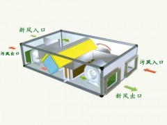 新風(fēng)系統(tǒng)是根據(jù)在密閉的室內(nèi)一側(cè)用專用設(shè)備向室內(nèi)送新風(fēng),再從另一側(cè)由專用設(shè)備向室外排出,在室內(nèi)會形成“新風(fēng)流動場”,從而滿足室內(nèi)新風(fēng)換氣的需要。實(shí)施方案是:采用高風(fēng)壓、大流量風(fēng)機(jī)、依靠機(jī)械強(qiáng)力由一側(cè)向室內(nèi)送風(fēng),由另一側(cè)用專門設(shè)計(jì)的排風(fēng)風(fēng)機(jī)向室外排出的方式強(qiáng)迫在系統(tǒng)內(nèi)形成新風(fēng)流動場。在送風(fēng)的同時對進(jìn)入室內(nèi)的空氣進(jìn)過濾、滅毒、殺菌、增氧、預(yù)熱(冬天).
